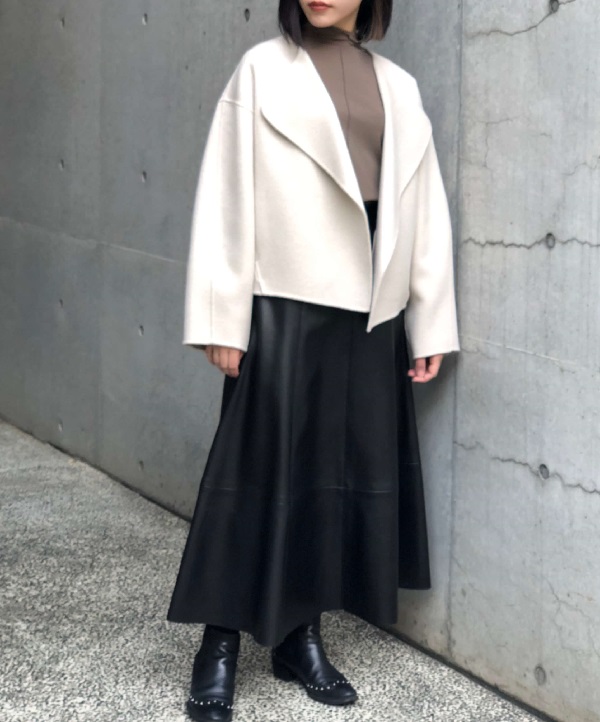 ショートコート × ハイウエストスカート
