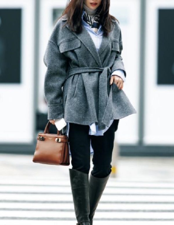 ウエストベルト付きコート × スキニー