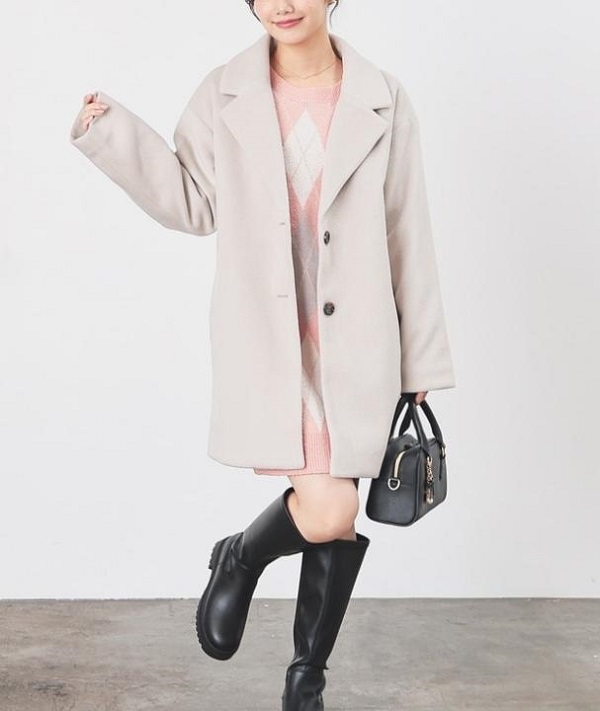 シンプルなウールコート × ニットワンピ